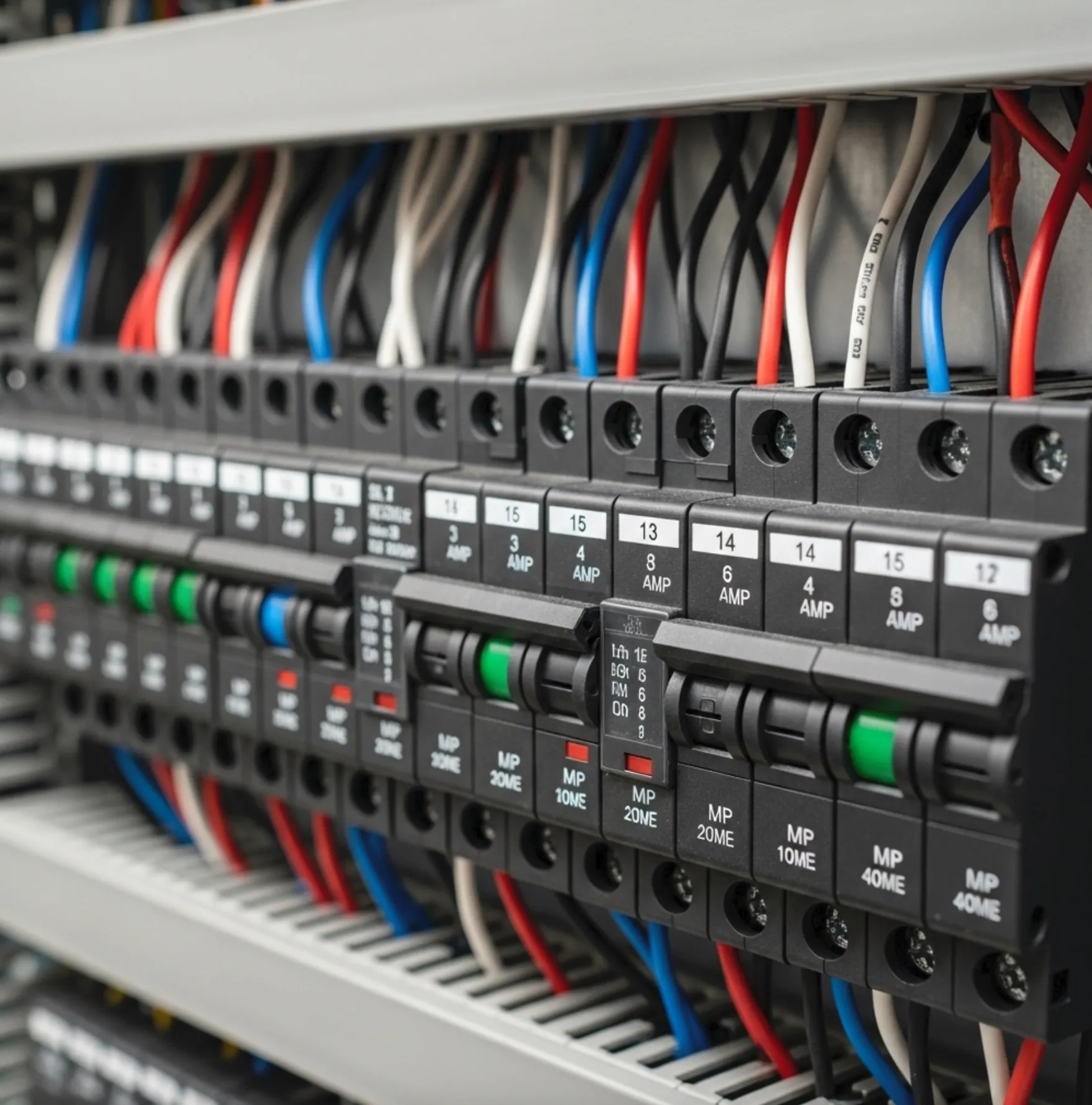 We install the new panel, connecting circuits to high-quality breakers and verifying the grounding system is up to code.